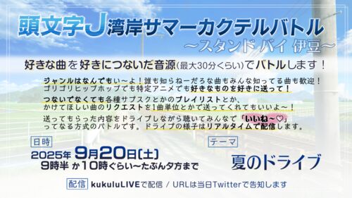 タイトル意味不明すぎて「は?」だとおもうんですけどォ……。 趣味で「いろんな人に送ってもらった音源を聴きながらドライブしていいね~ってなってる様子をインターネット配信する」という遊びをしており、それについてTwitterでいろいろ書いていたらもうゴ…